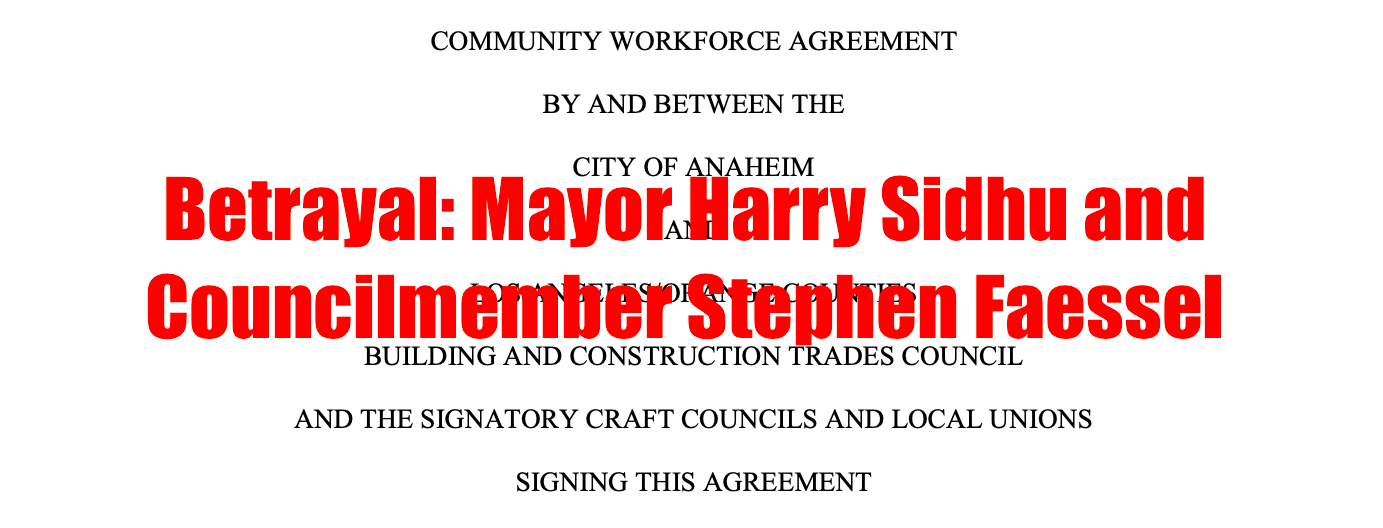 Betrayal! Anaheim Mayor Harry Sidhu and Anaheim City Councilmember Steve Faessel LIED About "Negotiating" the New Project Labor Agreement with Labor Unions
